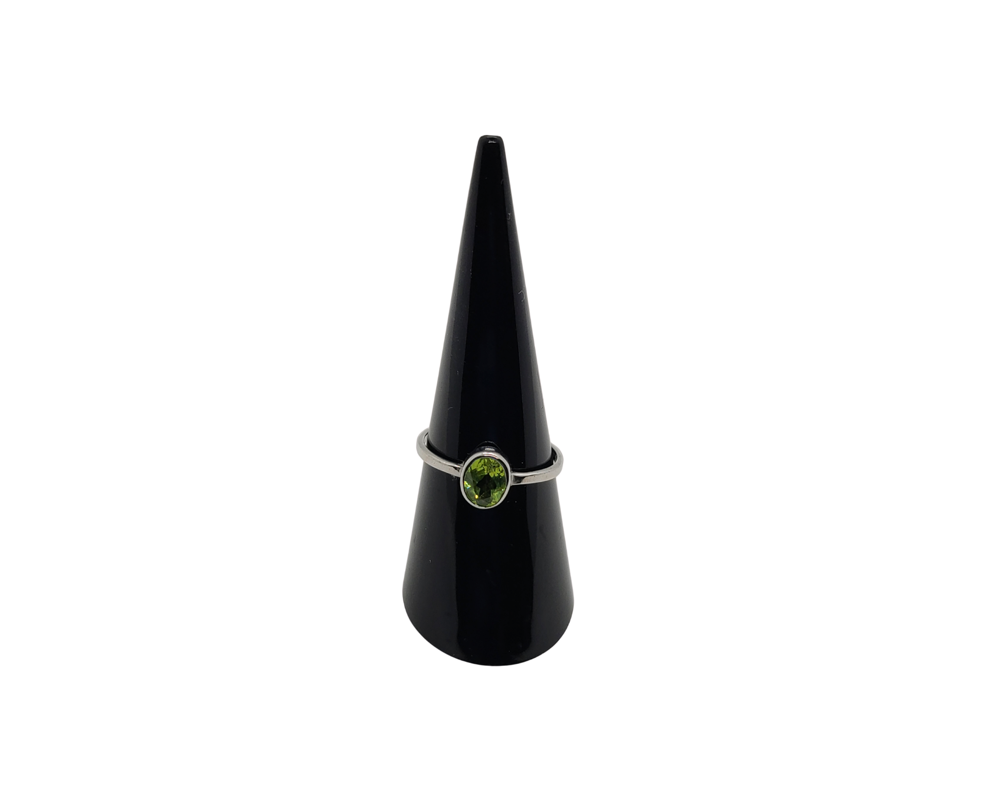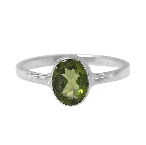 Sterling silver with rhodium, 9x7mm oval stone ring with flat band, color: Peridot