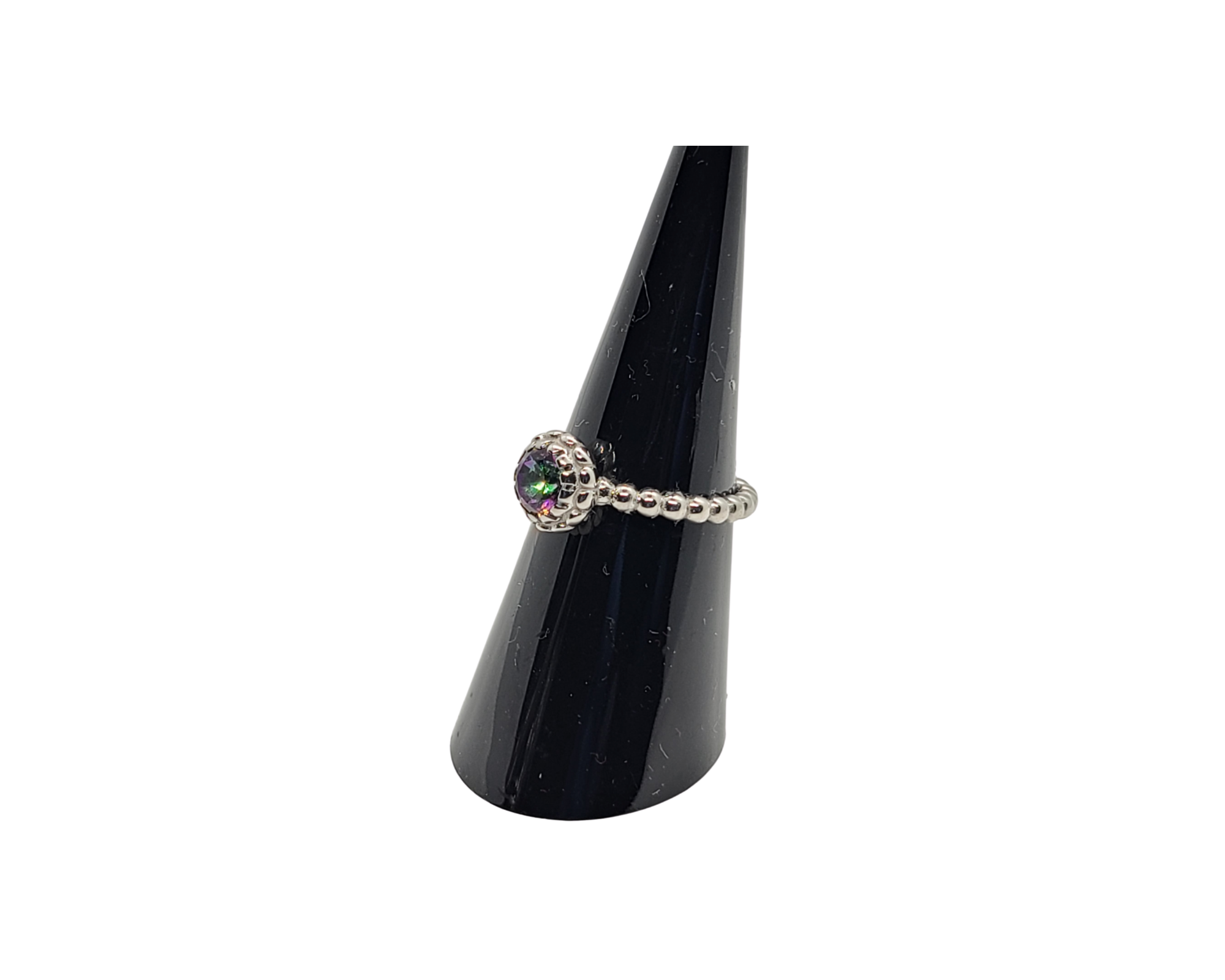Sterling silver with rhodium, 7mm stone ring, Color: Quartz (Mystic)