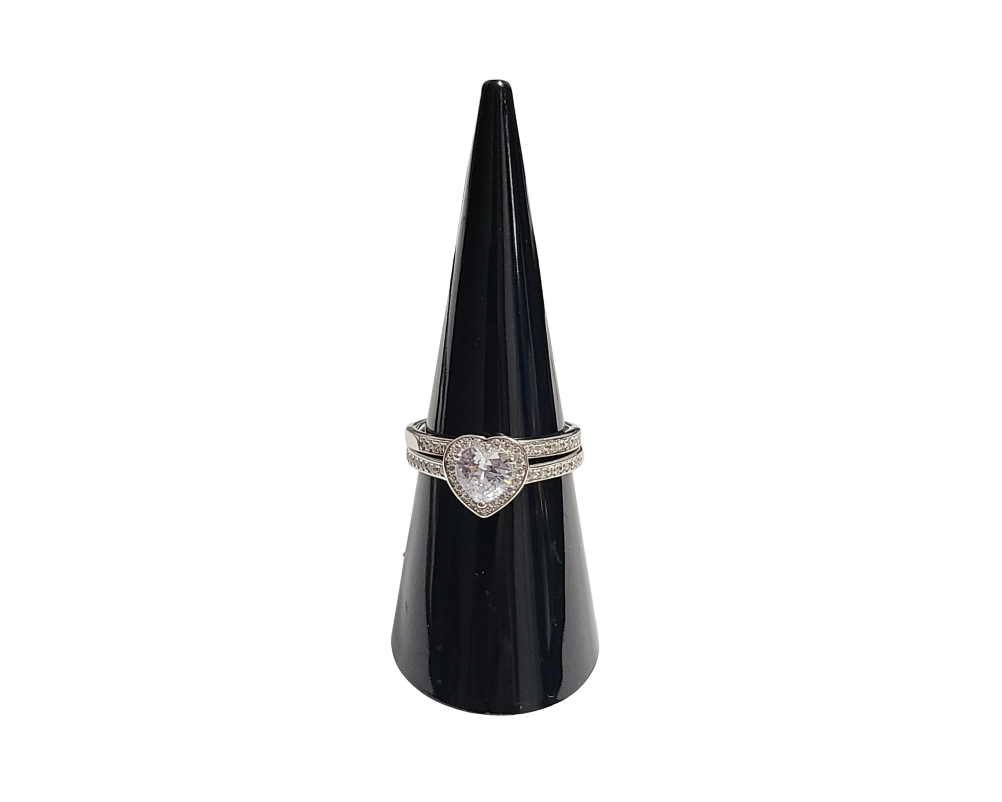Sterling Silver With Rhodium Cubic Zirconia Heart Ring Set