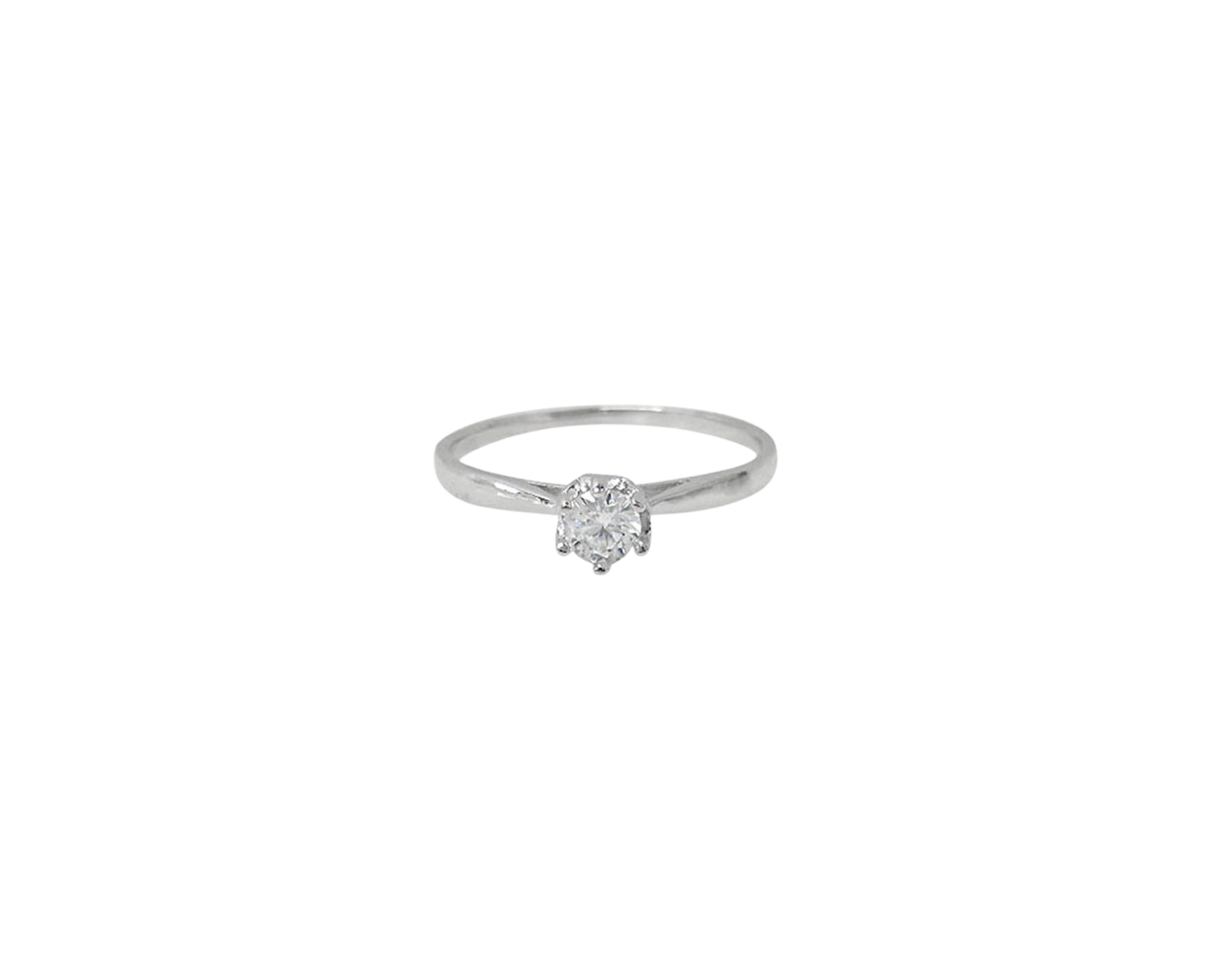 Sterling Silver With Rhodium Cubic Zirconia Solitaire Ring