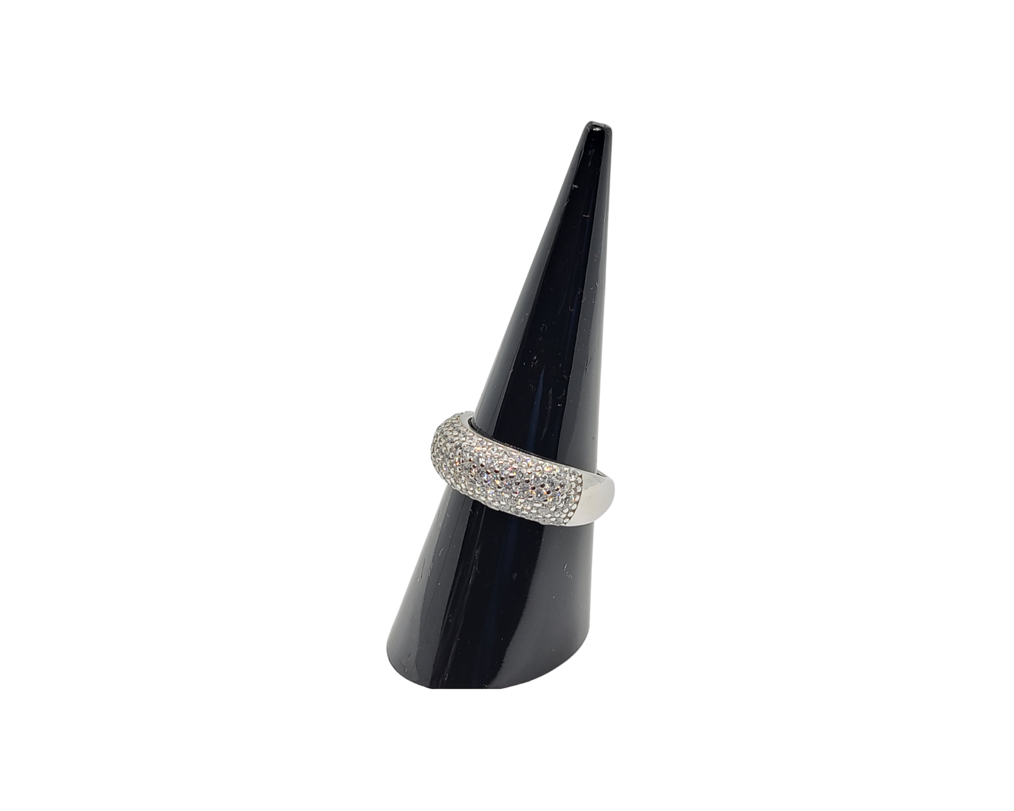 Sterling silver with rhodium cubic zirconia ring, 8.5mm width.