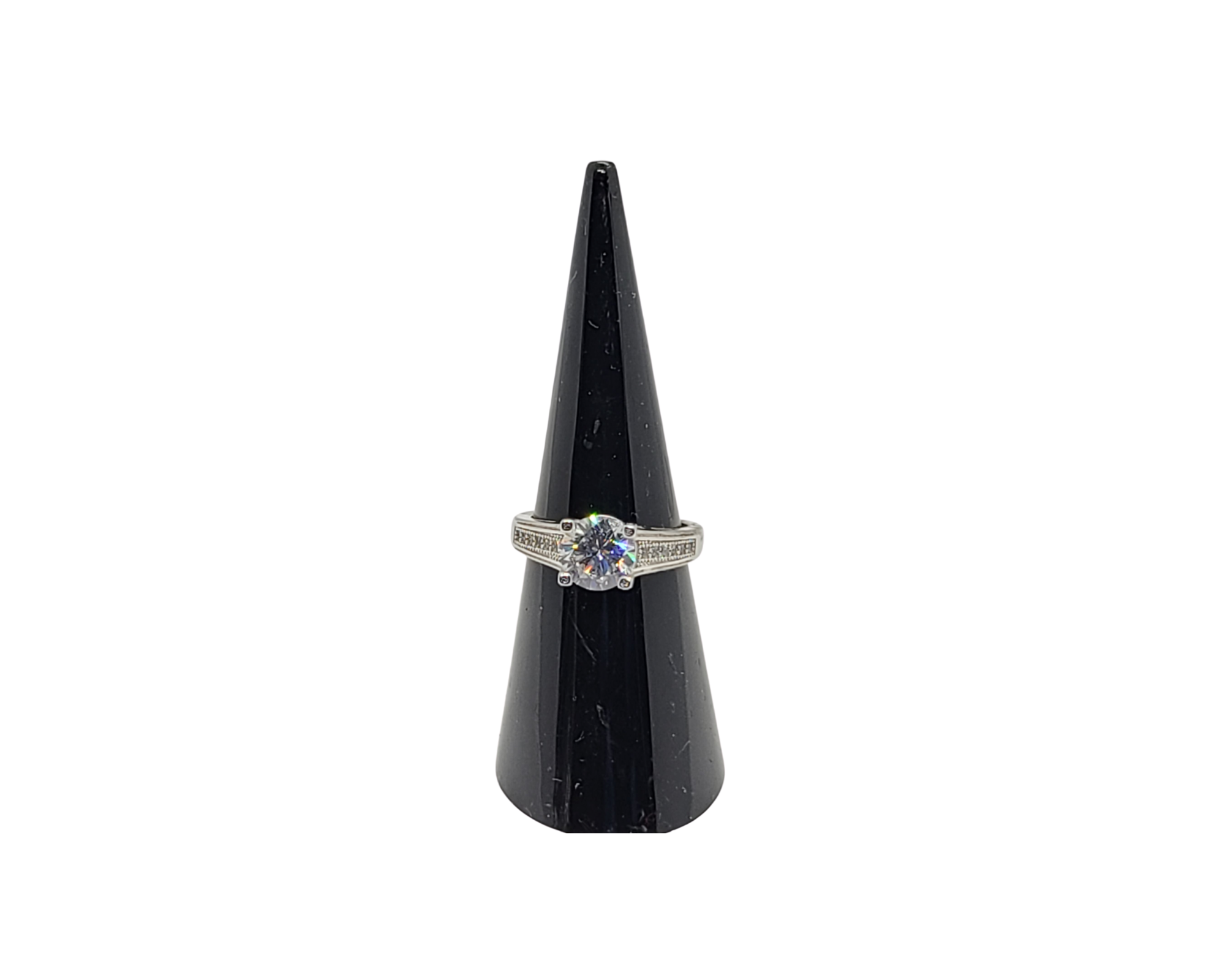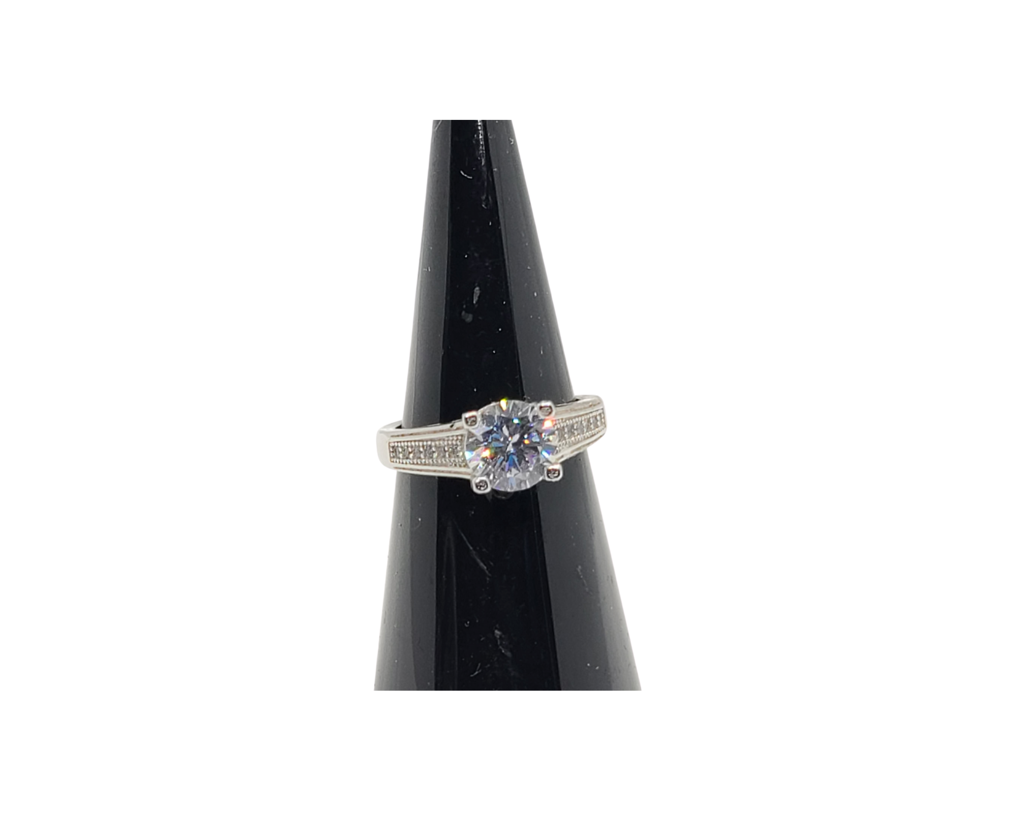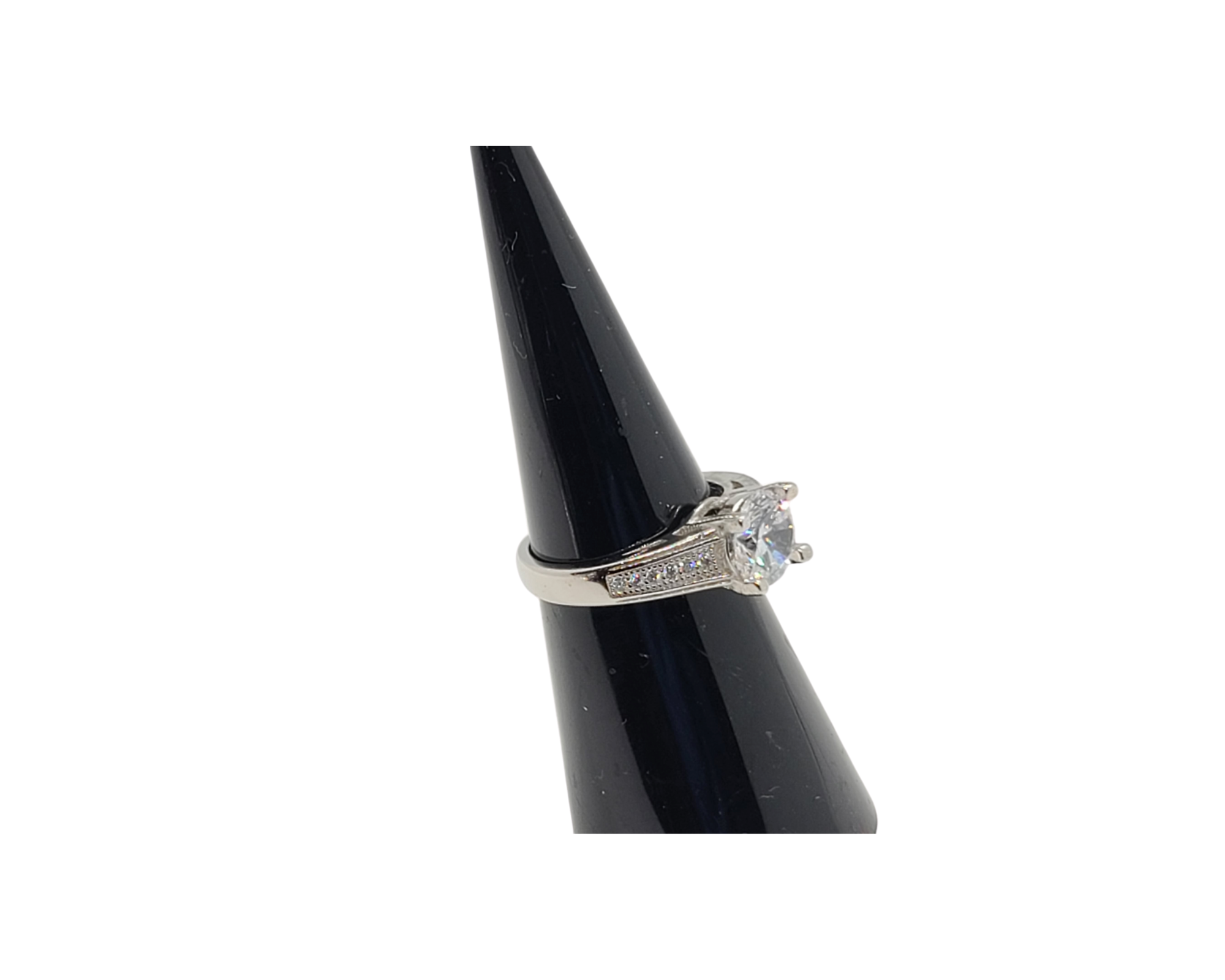 Sterling silver with rhodium, 6mm cubic zirconia ring.